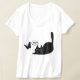 Adicione um toque lúgubre à sua roupa com esta adorável t-shirt que inclui um curioso gato preto a dizer "Meow" a uma borboleta. Um design simples mas na moda perfeito para amantes de gatos, fãs de borboletas, ou qualquer um que desfrute de uma forma fofa e minimalista. Excelente para o visto diário, roupas casuais, ou como um presente pensativo. Suave, confortável e projetado para durar.