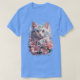 Um belo e doce desenho de um gato rodeado de flores. O gato tem uma expressão feliz e relaxada, e as flores são brilhantes e coloridas. Esta design de camiseta é perfeita para quem ama gatos e flores.