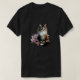 Esta design apresenta um lindo Gato Florestal Norueguês deitado sobre um fundo de flores.