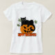 É um gato negro descansando em uma assustadora design de abóbora com mensagens de "Feliz Dia das Bruxas". Um presente de Dia das Bruxas ideal para donos de gatos e mulheres que amam gatos.