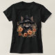 Camiseta Gato preto bonito no chapéu de uma bruxa