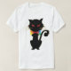 Camiseta Gato Preto Cinto Vermelho Olhos Arco-Íris Trabalho