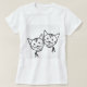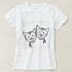 Dois gatos de desenho animado em preto e branco, um à esquerda e um à direita, se sobrepondo. Os gatos têm orelhas triangulares, rostos redondos, e uísques. Eles também têm uma boca pequena e curvada e dois pequenos olhos redondos. Os gatos são conectados por uma fina linha que forma uma forma V. O fundo é branco.