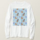 Gatos em xícaras e caixas e gotas de leite em fundo azul