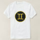 Gemini zodiac assina ouro e camiseta do círculo preto - estilos masculinos e femininos disponíveis. Design de símbolo Gemini dourado embutido em www.happywishingwell.com. Boas bênçãos!