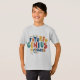 Esta vibrante e divertida design de camiseta apresenta a frase "FUTURE GENIUS IN PROGRESS" em letras negrito e coloridas. As palavras são dispostas em um layout dinâmico e atraente, com um ícone de lâmpada que simboliza a criatividade e uma lupa que representa a curiosidade. O design está rodeado de rabiscos e formas lúdicas, acrescentando uma vibração divertida e enérgica.