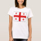 A frente desta camiseta exibe corajosamente a bandeira georgiana com sua cruz vermelha distintiva com quatro cruzes menores sobre fundo branco. Isto é combinado atrás por um mapa atraente da Geórgia.
