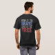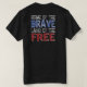 Cão de german shepherd que guarda orgulhosa a bandeira e os Estados Unidos da América dos E.U., com as palavras em casa do bravo, terra do livre na parte traseira do t-shirt, trazida orgulhosa a você por Just4GSD.com, casa do cão de german shepherd.