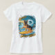 Um German shepherd inteligente, fofo e engraçado caminha em cima de uma prancha de surfe em uma onda enorme em uma ilha tropical.