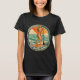 Get on board brings retro California surf shop vibes to life with a red bikini clad beach blonde pin-up. This coastal cutie is enjoying a seaside sunset paddle in front of a glowing orange sky and horizon hugging clouds. Made for beach bums, salty paddleboarders and anyone living on island time. This cool coastal graphic print t-shirt will add ocean energy to any outfit. | Pro-Tip: For vibrant colors we recommend vivid printing for most apparel. For white apparel select classic printing.