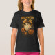 Uma camiseta encantadora do Halloween que apresenta um fantasma fofo assustador num chapéu de bruxa rodeado por abóboros brilhantes, morcegos e uma lua de cheio. Este design de estilo de colheita gerado pela IA combina vibrações acolhedoras com um toque de magia clássica do Halloween