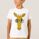 Girafa Amarela vestindo especificações modernas, em camisas para crianças de criança, menina e adultos. adicionar opção de texto.