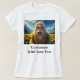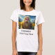Pé grande brincando num campo de girassóis. Adicione o seu próprio ditado "Eu acredito", "mantenha-o agitado", "país do pé grande", "seja agitado", "fora esmagado"