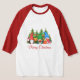 Feliz Natal Gnomos de Diversão Colorida de Água com Presentes de Natal Camiseta Feriada com Pinheiros e Luzes de Cordas.