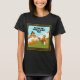 Esta camiseta apresenta dois perus partilhando uma fatia de torta de maçã sobre uma cerca de piquete, é uma forma divertida de dar o tom para riso, boa comida e alegria de férias.