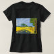 Golden Fields and Path captures a peaceful countryside road where vibrant yellow fields meet deep, long tree shadows under a soft blue sky.