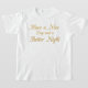 Ready to wear your pleasant greeting in style? Click to order your "Have a Nice Day & a Better Night" Gold Script T-Shirt today. Shop for joy and carry the light to every hour, wherever you are!