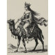 A mystical vision of Gomory appears as a radiant duchess, poised atop a camel. Elegance meets mystery in flowing robes and intricate detail, blending power, beauty, and symbolism into a timeless desert tableau.