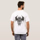 A symmetrical design featuring a complex tribal knot center that transitions into large, detailed bat-like wings. The artwork is rendered in a monochromatic, sketch-like style with high-contrast shading and sharp, interlocking curved lines.