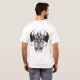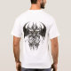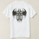 An intricate and symmetrical tribal crest featuring sharp, curved lines and weathered, metallic textures. The design is centered around a geometric totem and is flanked by large, stylized bat wings with a leather-like appearance. This bold, high-contrast emblem is set against a solid black background