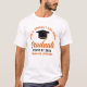 Estas modernas t-shirts personalizadas de formando de guião laranja apresentam o seu nome de segundo grau ou de universidade para a classe de 2025. Personalize com o seu ano de graduação com o script manuscrito em chic e o boné de formando preto para um excelente personalizado de festa de formatura.