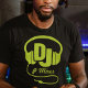 Estilo de logotipo do verde limão projetado de forma exclusiva DJ tee. Excelente para DJ ou seria DJ ou apenas um presente divertido para um fã de música. Personalize com o nome de sua escolha. Exemplo lê Misturador DJ P. Design gráfico original por Sarah Trett para www.mylittleeden.com