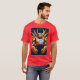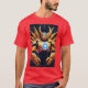 Tee guerreiro futurista futurista com grades tecno, chifres, emblema brilhante e design de cibernética vetorial. Ideal para gamers, cosplayers, fãs de anime e amantes de ruas de ficção científica.