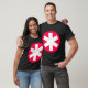 Um símbolo grande de asterisco em branco sobre um fundo colorido. Um design simples e simples em si mesmo ou pode ser mais personalizado. NB: O design também se repete no verso. No entanto, você pode remover qualquer um dos designs, se preferir. Esta camisa é totalmente personalizável.