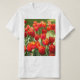 Grande campo de tulipas vermelhas. Tulipas vermelhas num dia de verão. A foto foi tirada em maio de 2022. O poster é adequado para o design do interior.