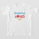 Granma me ama T-shirts, fatos-chave, cartas, bolsas e outros itens com design de texto azul, vermelho e amarelo.