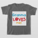 Granma me ama T-shirts, fatos-chave, cartas, bolsas e outros itens com design de texto azul, vermelho e amarelo.