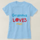 Granma me ama T-shirts, fatos-chave, cartas, bolsas e outros itens com design de texto azul, vermelho e amarelo.