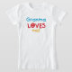 Granma me ama T-shirts, fatos-chave, cartas, bolsas e outros itens com design de texto azul, vermelho e amarelo.