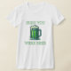 Uma Rua inteligente. A design do Dia de Patrick com uma caneca de cerveja verde e gelada com trevos, combinada com o trocadilho "Irish You was Beer", uma reviravolta divertida em "Eu queria que você estivesse aqui", perfeita para adicionar humor ao espírito de feriado.