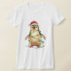 Um pinguim giro, pronto para as férias, embrulhado em luzes coloridas de Natal e com um chapéu festivo de Papai Noel.