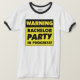 T-Shirt Engraçado do Bachelor Party para noivo, melhor homem, noivo e todas as caras. O design detecta um sinal de aviso e lê: "Aviso, Partido de Despedida em Despedida em Andamento." Pode ser personalizado.