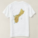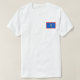 A frente desta camiseta tem uma pequena bandeira guamaniana com seu familiar motivo central em um fundo azul com borda vermelha, enquanto a parte de trás exibe um mapa de alivio de Guam. Disponível em t-shirts, camisas de suor, polos, capas compridas e muito mais.