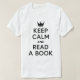 Fique calmo e leia uma camiseta do livro com uma coroa minimalista. Camisas excelentes para aqueles que adoram ler. *Observe que a Marca d'água do Zazzle que aparece na visualização de zoom NÃO aparecerá no produto impresso final. © Tipo de novo