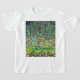Camiseta com a pintura de Gustav Klimt Árvore de Maçã, I (1912). Uma colorida árvore de maçã vermelha está em um campo verde de flores roxas, rosa, amarelas e brancas. Um presente perfeito para fãs de Art Nouveau e arte austríaca.