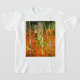 Camisa-T com a pintura Farmhouse de Gustav Klimt com Árvores de Birch (1903). Uma paisagem autóctone de folhas de laranja numa floresta de pássaros com lindas flores azuis. Um presente maravilhoso para fãs de Arte Nouveau e de Arte Austríaca.