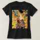 Camiseta com pintura de óleo de Gustav Klimt Lady com ventilador (1918). Uma mulher vestindo um quimono azul segura um fã vermelho contra um fundo amarelo colorido de flores e pavões. Um presente de excelente para fãs de arte japonesa e europeia.