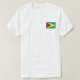 A frente desta t-shirt tem uma pequena bandeira guianense com o seu familiar triângulo vermelho-fibrilado preto num triângulo amarelo branco fimbriado sobre um fundo verde, enquanto a parte de trás apresenta um mapa de alivio da Guiana. Disponível em t-shirts, camisas de suor, polos, capas compridas e muito mais.