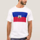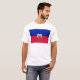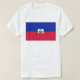 Bandeira do Haiti. A bandeira do Haiti consiste em dois bares horizontais, azuis sobre vermelhos, defrontados por um painel branco com a casaco de armas haitiana. O casaco de armas representa um troféu de armas prontas para defender a liberdade e uma palma real para a independência. A palma é tocada pelo Boné da Liberdade. O lema está em um pergaminho branco lendo L'Union Fait La Force ("Unity Faz Força.")