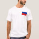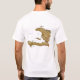A frente desta camiseta tem uma pequena bandeira haitiana com suas conhecidas bandas horizontais, azuis e vermelhas, enquanto a parte de trás exibe um mapa do alivio do Haiti. Disponível em t-shirts, camisas de suor, polos, capas compridas e muito mais.