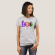 Camisa divertida do Halloween com BOO em roxo, vermelho e roteiro verde com um raven esfregão, uma aranha viúva preta e um gato preto.