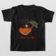 Cabeça de abóbora assustadora vestindo um chapéu com uma camisa de Halloween para crianças. Substitua o texto no modelo ou não se esqueça de excluir sem texto. Disponível em tamanhos, estilos e cores variados para homens, mulheres e crianças. Visite o tesouro dos olhais sorridentes para ver mais cartões e presentes de Dia das Bruxas.