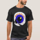 Olho humorístico com o reflexo da lua e das estrelas, e uma bruxa voadora com um gato preto assustador numa vassoura para o Halloween.