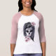 Camiseta feminina mangas raglan 3/4 da Bella+Canvas, Branco/Cor-de-rosa, Adulto P