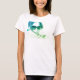 HAMbWG - T-Shirts, camisas de noite e camisolas - HAMbWG B W Face w Logo 4 - rapariga de óculos escuros a olhar por cima da imagem gráfica de atitude do ombro, realçada em azul e violeta, com o logótipo na violeta codinstar.