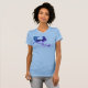 HAMbWG - T-Shirts - HAMbWG B W Face w Logo 4 - rapariga em óculos escuros a olhar sobre a imagem gráfica de atitude do ombro, melhorada em azul e violeta, com o logótipo em violeta codystar numa t-shirt azul.